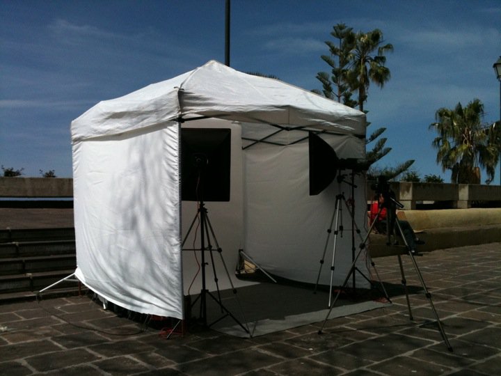 El proyecto requiere del uso de material de estudio fotográfico en ex­teriores, lo que conlleva una serie de requisitos técnicos y formales en formato de rápido montaje-desmontaje y de fácil traslado (El estudio portátil consta de una carpa plegable con paredes de loneta, dos cam­panas difusoras, cinco trípodes, un portafondo portátil con un rollo de fondo blanco, dos flashes de estudio de 500w de potencia, una alfombra y una cámara).