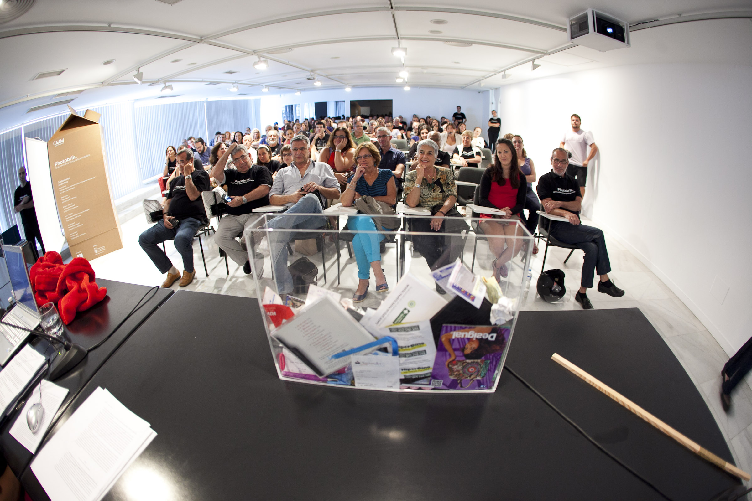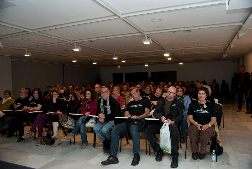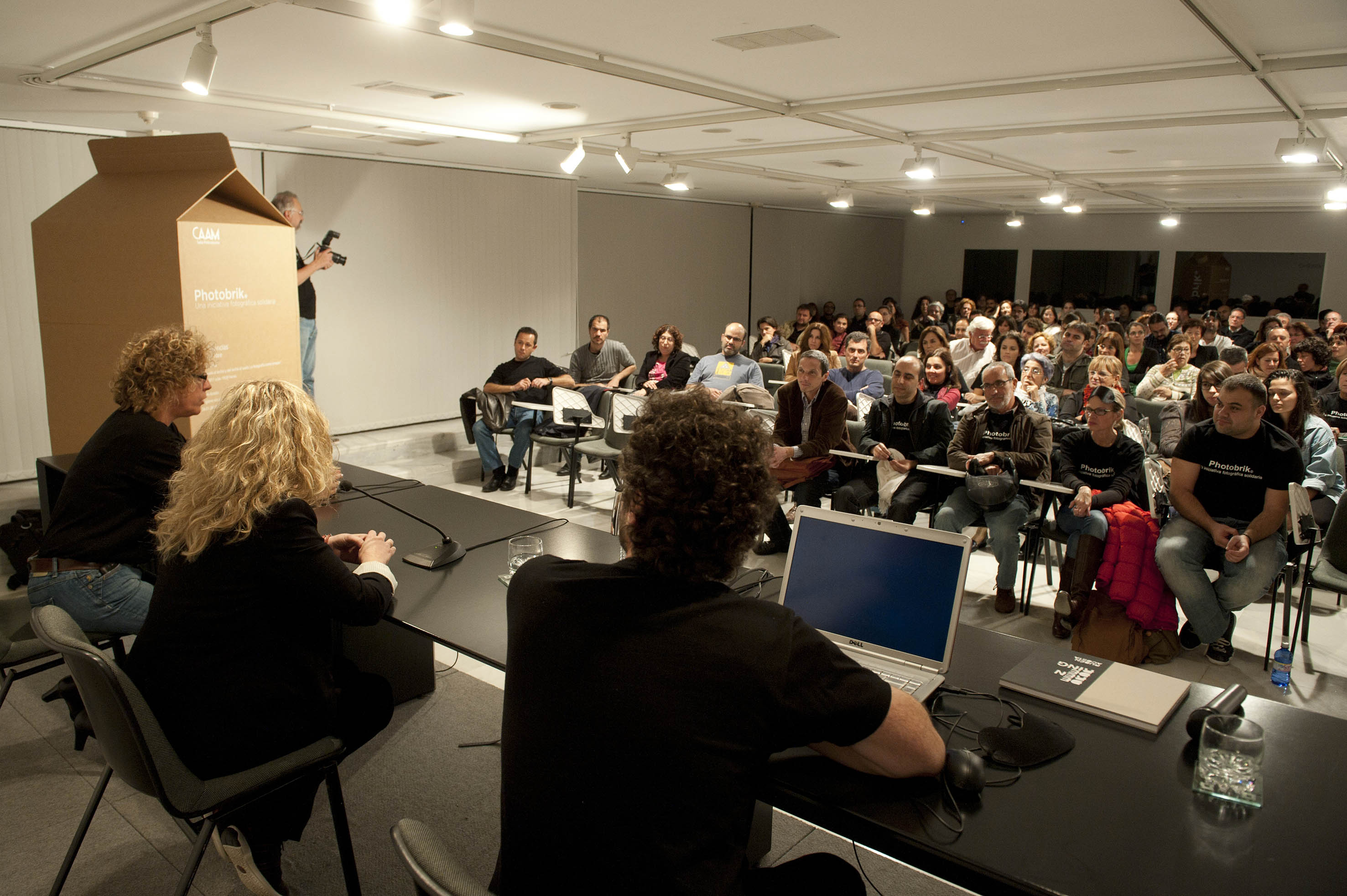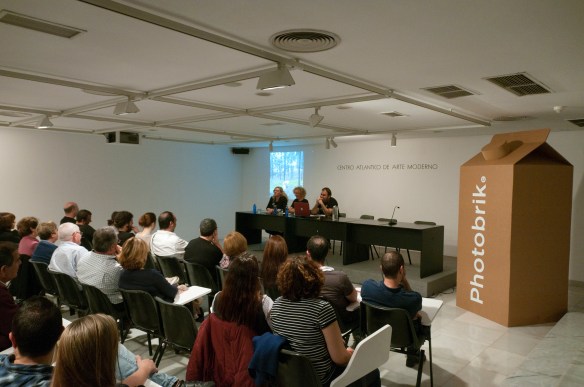 La fotógrafa TERESA CORREA inaugura en el CAAM, Photobrik con su conferencia » Del suelo al techo y del techo al suelo. La fotografía como terapia «.  Una sala desbordante de público, sorprendió a los organizadores, superándose el aforo de 120 plazas con cerca de 180 personas. Una respuesta solidaria y comprometida por parte de todos los asistentes que a su vez, duplicaron sus aportaciones de tetrabriks.
