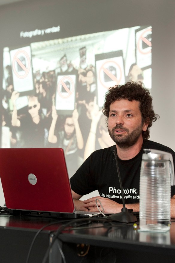 Volvemos a llenar la sala con RUBÉN ACOSTA y su conferencia «Higiene Visual»,  discurso  en el que plantea la imposibilidad de definir la fotografía en la actualidad en términos de objetividad, debido a la democratización que ha experimentado este medio, sobre todo por la irrupción de la fotografía digital y programas como Photoshop, que la hacen fácilmente proclive a la manipulación. Una conferencia llena de ejemplos visuales con los que irónicamente nos desvela el construir de una imagen, finalizando la misma con su proyecto De-Rendering, sin más les dejamos con las imágenes de este apasionante encuentro,visítanos